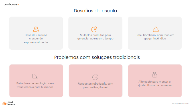De um lado, o crescimento: bases dobrando, novos canais surgindo, clientes mais exigentes. Do outro, o limite humano de uma operação que tenta responder tudo, a todo momento, com o mesmo número de pessoas.